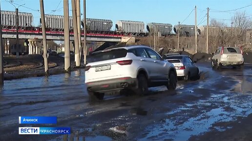 В Ачинске резкая оттепель превратила дороги в полноводные реки