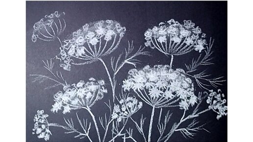 Укроп. Рисунок меловым карандашом на черной бумаге.