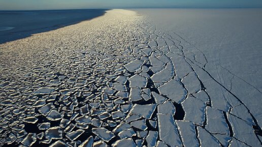 Лёд тает на Ладожском озере ранней весной