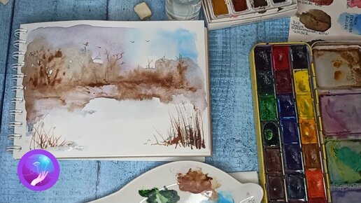 Рисуем пятнами акварельный пейзаж