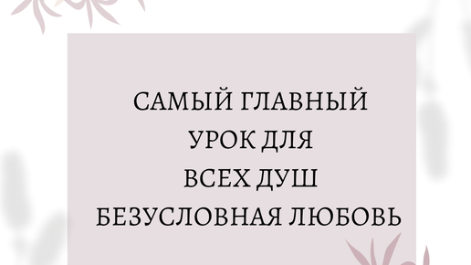 Самый главный урок для всех душ БЕЗУСЛОВНАЯ ЛЮБОВЬ.