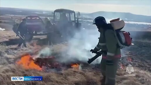 В Красноярском крае пожарные потушили первый в этом году пал травы