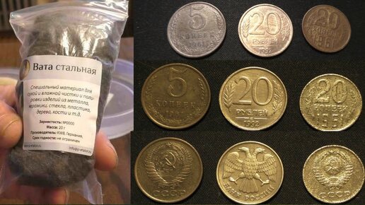 Как справилась стальная вата с чисткой монет поздних СССР? Латунь, медь-никель, медь-никель-цинк