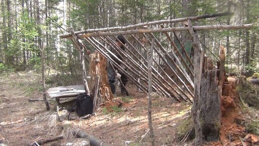 Строим Таежный Шалаш в Девственной тайге - Продолжение Рыбалки ссылка в Описании 4-08 минуте Балаган Тайга Охота Федорович Папа