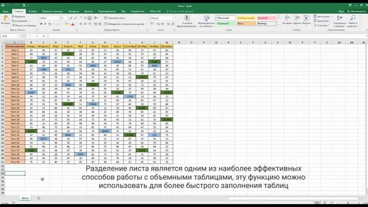 Как в Excel разделить окно на области?