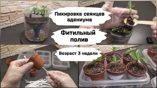Пикировка сеянцев адениума (возраст 3 недели).