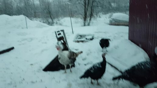 А у нас опять снегопад☃️❄☃️. День 31. Индюк МиРон сидит на яйцах.