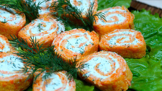 Рулет из моркови с сыром и зеленью. Нежный и очень вкусный