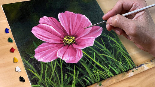 Цветок Космея как нарисовать. Живопись акрилом. Мастер-класс по Живописи акриловыми красками