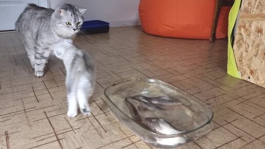 Коты & рыба _ Котенок знакомится с рыбками
