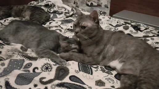 Релакс видео❤️ Пуся и Буся, мои серая банда) Пуся очень покровительствавать стал Бусю) А она балдеет от этого😊