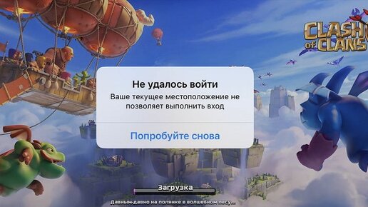 Clash of Clans - Ваше текущее местоположение не позволяет выполнить вход