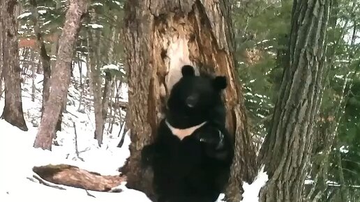 Гималайский мишка проснулся в Приморье и устроил настоящее танцевальное шоу у дерева!