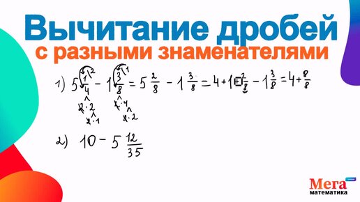 Вычитание дробей | Разные знаменатели | Дроби | МегаШкола | Математика 5 класс | Математика 6 класс