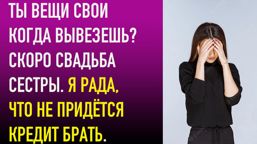 Ты вещи свои когда вывезешь? Скоро свадьба сестры. Я рада, что не придётся кредит брать.