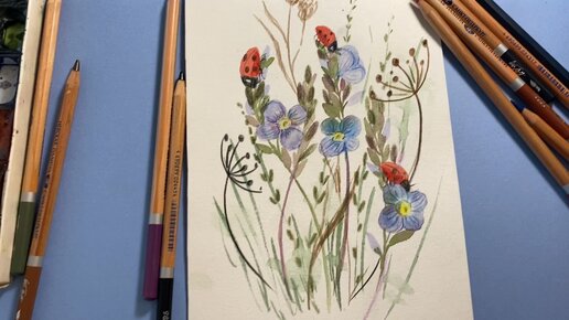 Божьи коровки на полевых цветах. Рисуем акварельными карандашами #рисуемкаждыйдень #артвереск #рисуноккарандашом