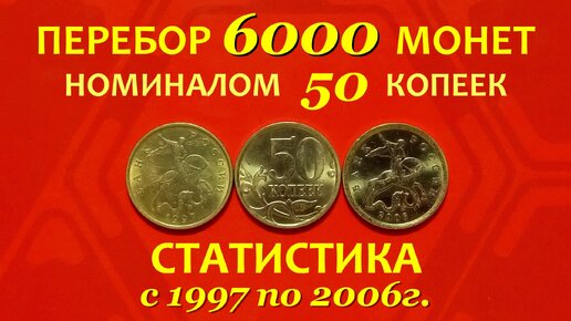 #ПЕРЕБОР (6000 шт.) 50 копеечных монет.✴️СТАТИСТИКА (по годам) 1997-2006.