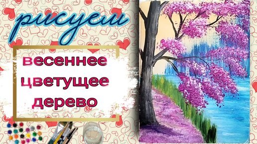 Рисуем Весеннее цветущее дерево. Как нарисовать весенний пейзаж красками гуашь.