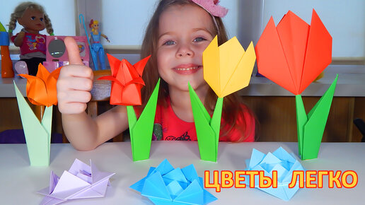 Лёгкое оригами пошагово для детей | Схемы: самый простой цветок, тюльпан, лотос.