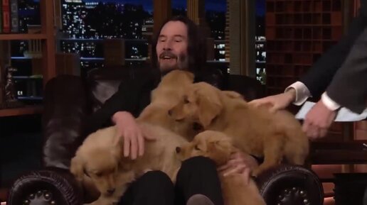 Киану Ривз провозгласил себя Щенячьим королём, после того как выиграл шесть щенков в викторине на шоу Джимми Фэллона