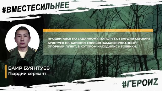 #ГероиZ: гвардии сержант Баир Буянтуев обнаружил хорошо замаскированный опорный пункт, в котором находились боевики