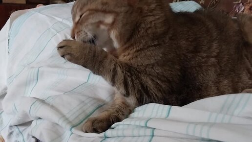 Толстый кот Степан и его сестра Лиза играют с веревочкой