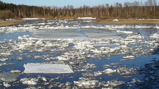 Ледоход на таёжной реке Пижма. Половодье весной в тайге.