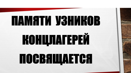 Памяти узников концлагерей посвящается видеопрезентация Сентябрьская ПБ № 1