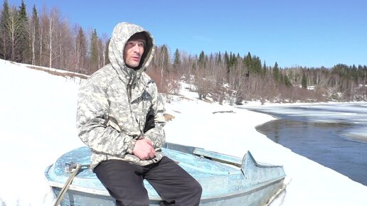 Весна в республике Коми. Прилетели утки на крайний север. Река освобождается от льда.