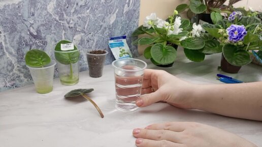 Укореняем листовые черенки фиалок в воде с секретом🤫🌺🍃