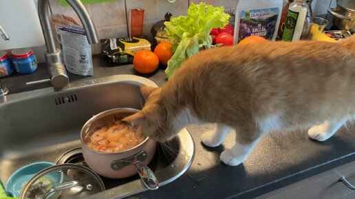 Кошка Рыжка мается на кухне: "есть чо пожевать"?