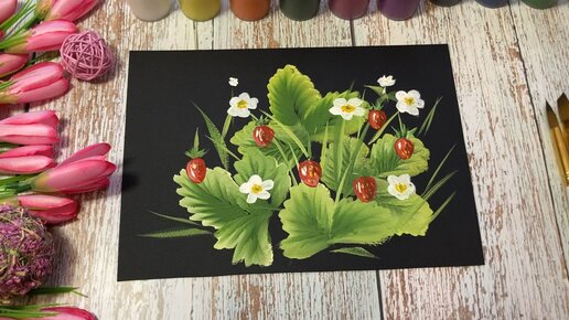 Рисуем землянику гуашью на тонированной бумаге. Мастер-класс по рисованию. Рисование для начинающих