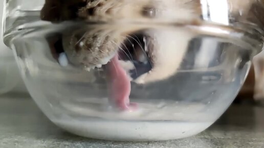 Кто ещё не видел, как умеют пить котики? Высокоскоростная съемка лакающего Бурундусика.