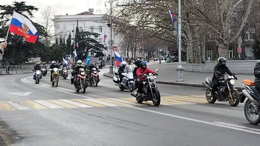 Проезд авто-мото колонны через Севастополь. Пл. Нахимова, 18 марта 2023 года