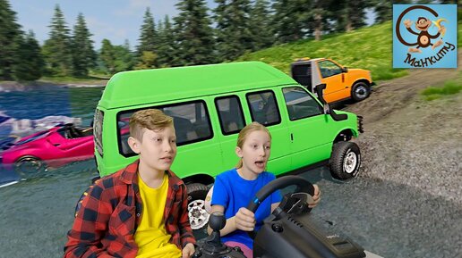 Дети и Машина. Диана и Даня едут через реку на машинах. Манкиту