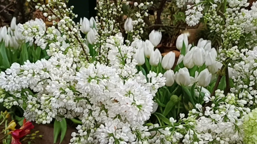 Сирень, ландыши, тюльпаны, крокусы, ранункулюсы, подснежники и другие цветы в Ботаническом саду МГУ "Аптекарский огород", в г. Москве