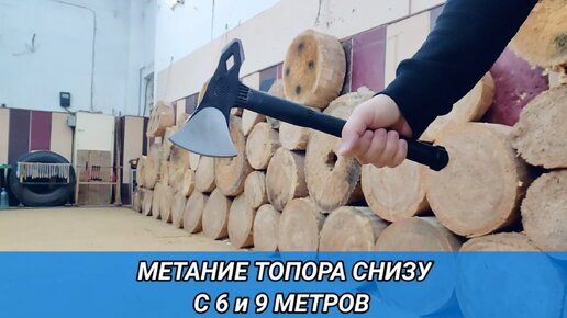 Метание топора снизу с 6 и 9 метров обратным хватом