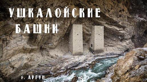 Встроенные в скальную нишу средневековые башни-близнецы. Аргунское ущелье. Чеченская республика.