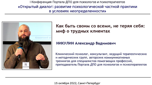 Миф о «трудных» клиентах: как быть своим со всеми, не теряя себя. Александр Никулин.