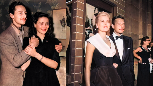 Богини Голливуда Джин Тирни и Грейс Келли, а также дизайнер одежды русского происхождения Олег Кассини