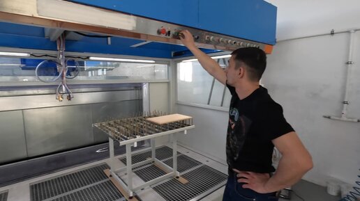 Наладка нанесения грунта изолятора на сложные детали панелей МДФ. Используется станок Profi Maxi + активация функции заворота факела