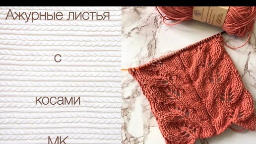 Узор спицами «Ажурные листья с косами»