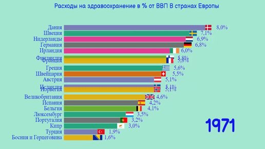 Расходы на здравоохранение в % от ВВП в странах Европы
