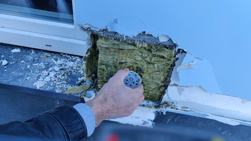 Вскрытие некачественно выполненного фасада, некачественная работа, некачественные материалы, фасады дома с утеплителем под полный демонтаж