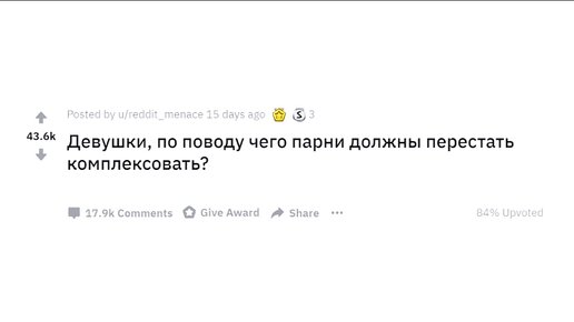 ДУВУШКИ, ПО ПОВОДУ ЧЕГО ПАРНИ ДОЛЖНЫ ПЕРЕСТАТЬ КОМПЛЕКСОВАТЬ КОМПЛЕКСОВАТЬ???