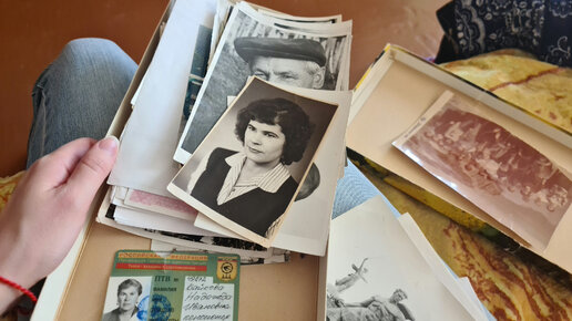 Смотрим с тетей Надей старые черно-белые фотографии наших родственников