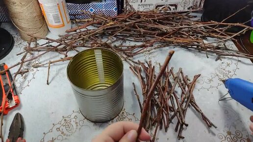 Идея переработки веток и жестяной банки! Чудесный топиарий Роза!