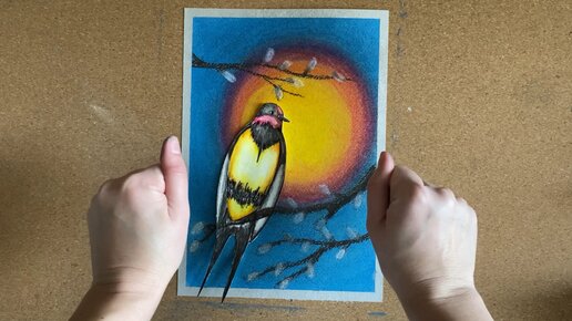 Рисуем ласточку. Очень яркая работа пастелью и акварельными карандашами.