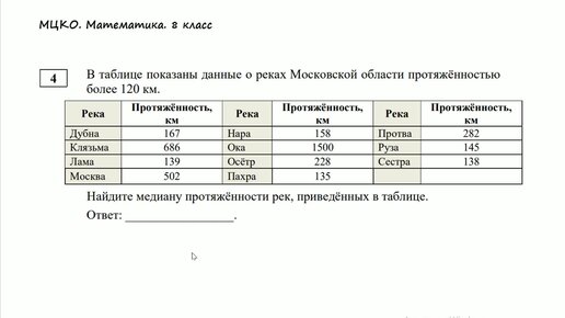МЦКО. Математика . 8 класс. Найдите медиану набора чисел