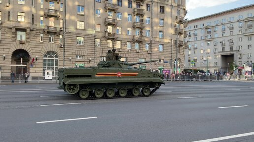 Колонна БМП-3 со снятой дополнительной защитой идёт по Москве